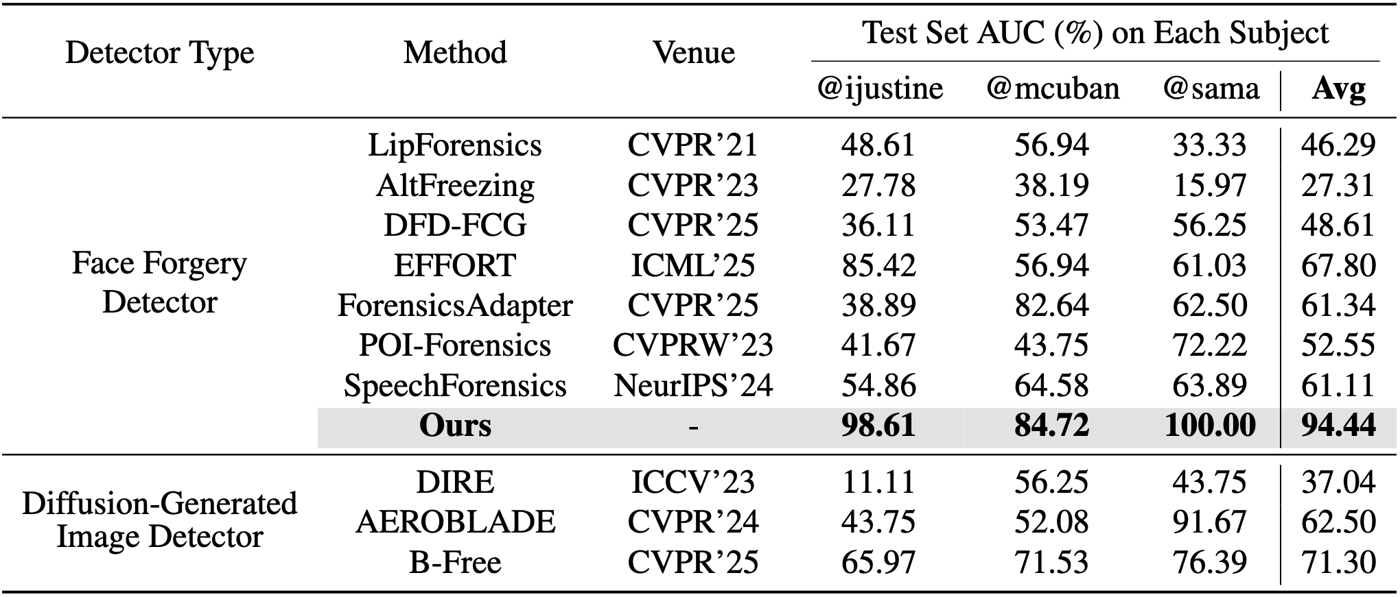 Our proposed ExposeAnyone approach is self-supervised, i.e., manipulation-agnostic, yet achieves state-of-the-art generalizability and robustness.